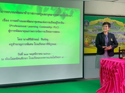 อบรมการสร้างและพัฒนาชุมชนแห่งการเรียนรู้ (PLC) สู่การพัฒนาคุณภาพการจัดการเรียนการสอน โดย นางศิริลักษณ์ ชินช่งจู ครูชำนาญการพิเศษ โรงเรียนราชินีบูรณะ
