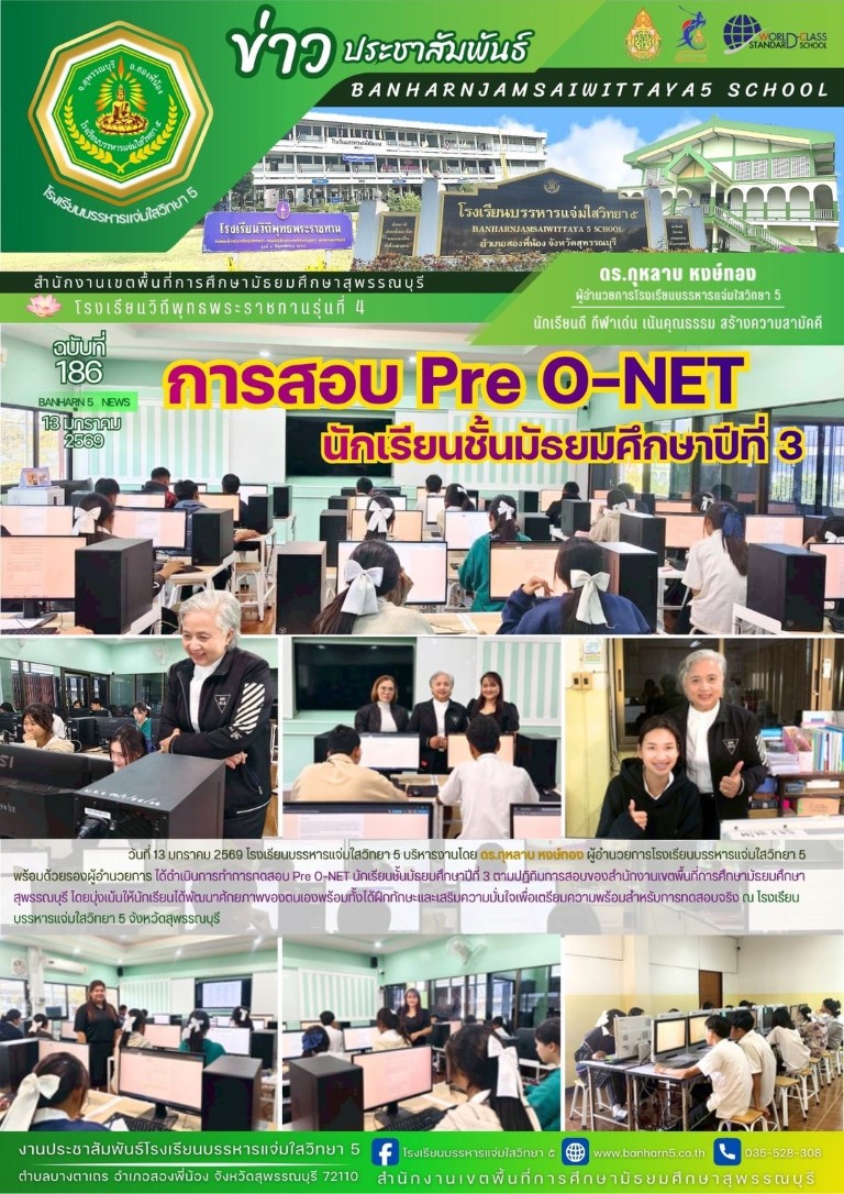 ดร.กุหลาบ หงษ์ทอง ผู้อำนวยการโรงเรียนบรรหารแจ่มใสวิทยา 5 พร้อมด้วยรองผู้อำนวยการ ได้ดำเนินการทำการทดสอบ Pre O-NET นักเรียนชั้นมัธยมศึกษาปีที่ 3