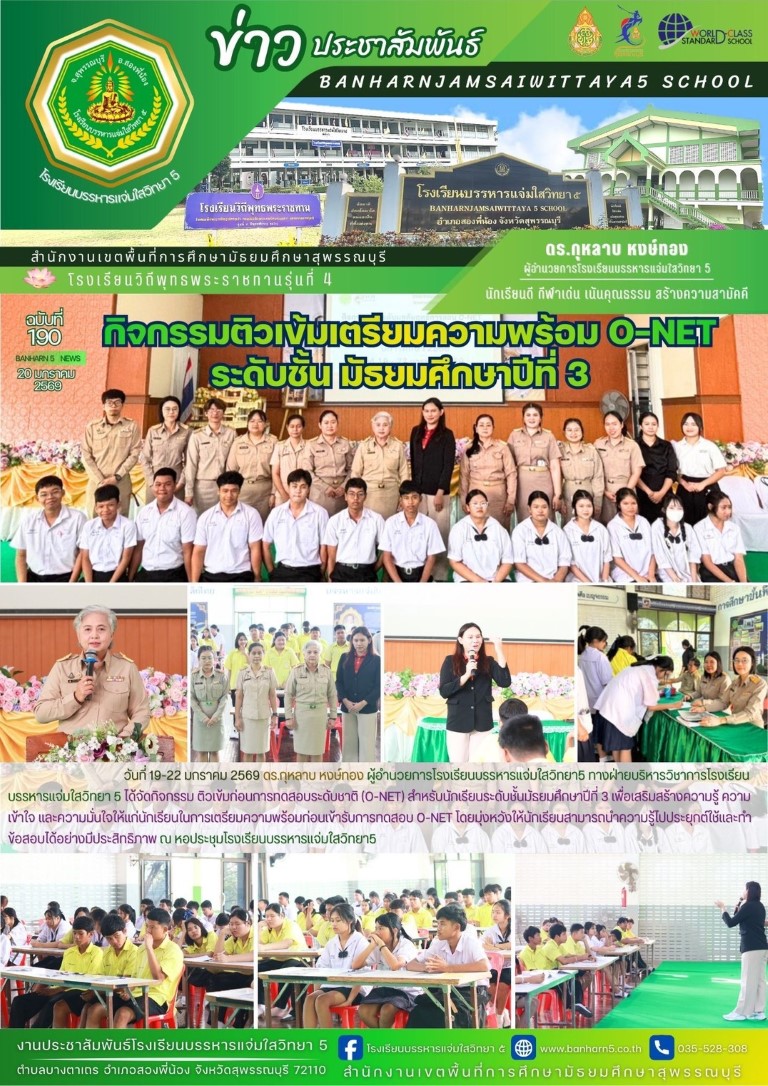 กิจกรรม ติวเข้มก่อนการทดสอบระดับชาติ (O-NET) สำหรับนักเรียนระดับชั้นมัธยมศึกษาปีที่ 3 ทั้งหมด 4 วิชา ได้แก่ วิชาภาษาไทย, วิชาภาษาอังกฤษ, วิชาวิทยาศาสตร์ และวิชาคณิตศาสตร์