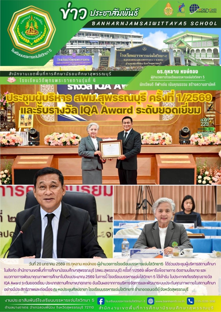 โรงเรียนบรรหารแจ่มใสวิทยา 5 ได้เข้ารับ ใบประกาศเกียรติคุณรางวัล IQA Award ระดับยอดเยี่ยม ประเภทสถานศึกษาขนาดกลาง อันเป็นผลจากการบริหารจัดการและพัฒนาระบบประกันคุณภาพภายในสถานศึกษาอย่างมีประสิทธิภาพและต่อเนื่อง