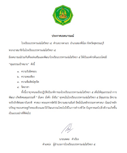 เจตจำนงสุจริตในการบริหารงานโรงเรียนบรรหารแจ่มใสวิทยา 5 |