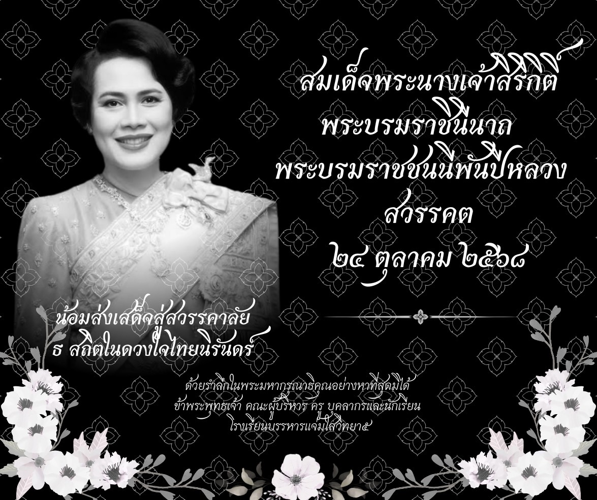ดร.กุหลาบ หงษ์ทอง ผู้อำนวยการโรงเรียนบรรหารแจ่มใสวิทยา 5 นำคณะผู้บริหาร คณะครู และบุคลากรทางการศีกษา ร่วมน้อมถวายความอาลัยแด่องค์สมเด็จพระนางเจ้าสิริกิติ์ พระบรมราชินีนาถ พระบรมราชชนนีพันปีหลวง