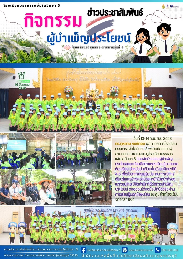 คณะครูโรงเรียนบรรหารแจ่มใสวิทยา 5 ร่วมจัดกิจกรรมผู้บำเพ็ญประโยชน์และทัศนศึกษาแหล่งเรียนรู้ภายนอกห้องเรียน สำหรับนักเรียนชั้นมัธยมศึกษาปีที่ 4-6 ณ ศูนย์ฝึกโรงเรียนจิตอาสา 904