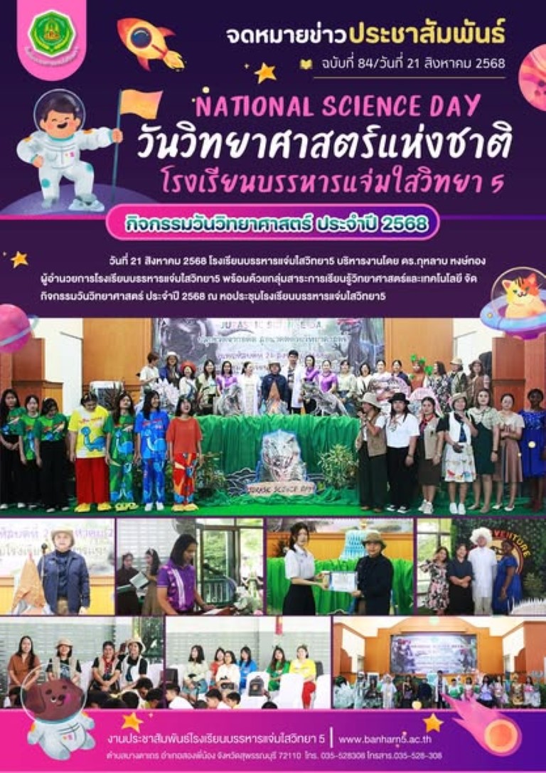 ดร.กุหลาบ หงษ์ทอง ผู้อำนวยการโรงเรียนบรรหารแจ่มใสวิทยา5 พร้อมด้วยกลุ่มสาระการเรียนรู้วิทยาศาสตร์และเทคโนโลยี จัดกิจกรรมวันวิทยาศาสตร์ ประจำปี 2568 ณ หอประชุมโรงเรียนบรรหารแจ่มใสวิทยา5