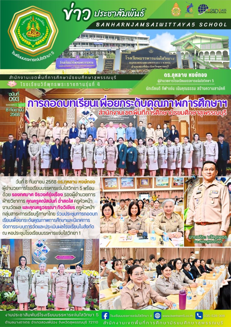 ดร.กุหลาบ หงษ์ทอง ผู้อำนวยการโรงเรียนบรรหารแจ่มใสวิทยา 5 พร้อมด้วยคณะครู ร่วมประชุมการถอดบทเรียนเพื่อยกระดับคุณภาพการศึกษาและนิเทศการจัดการระบบการวัดและประเมินผลโรงเรียนในสังกัด ณ หอประชุมโรงเรียนบรรหารแจ่มใสวิทยา 1